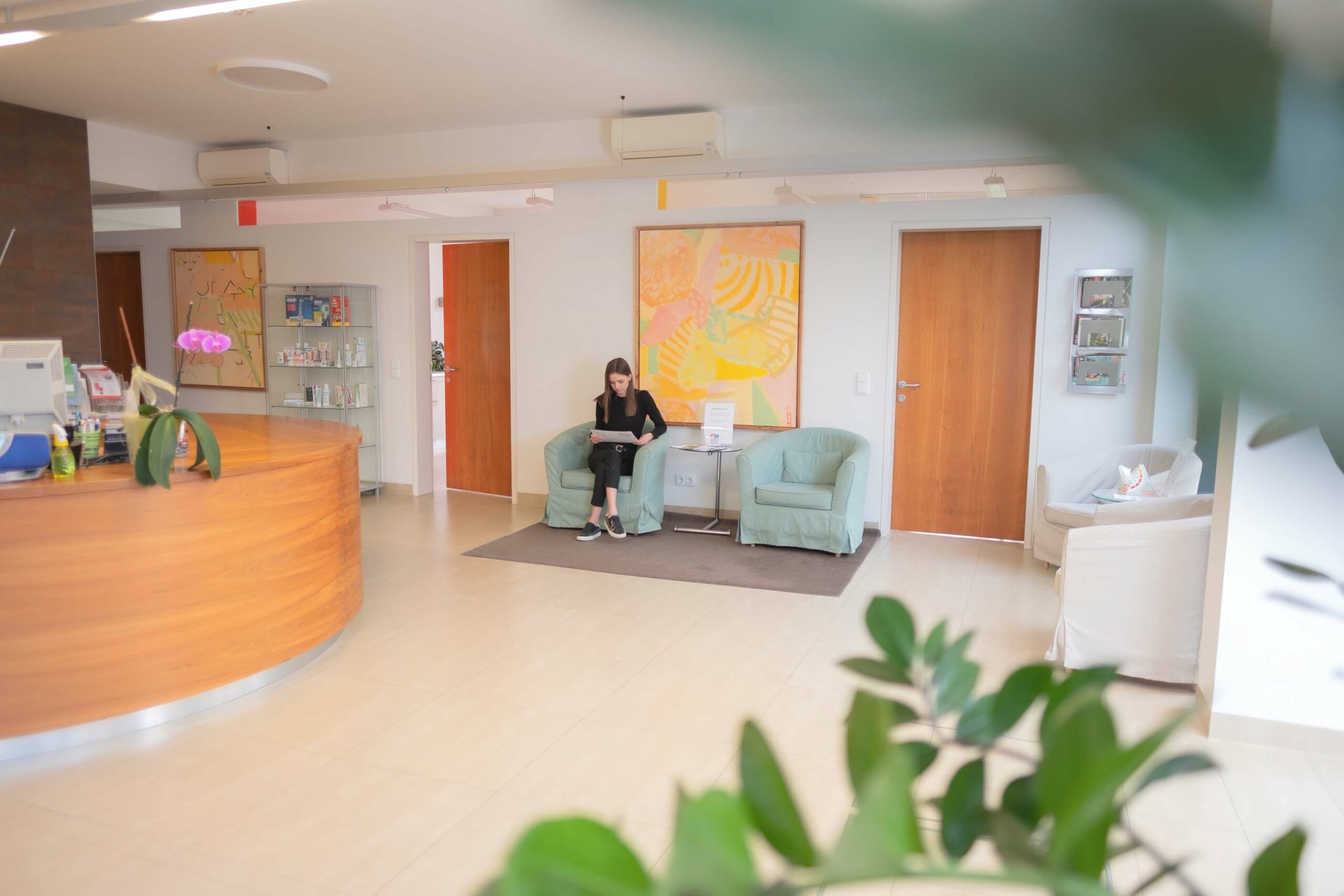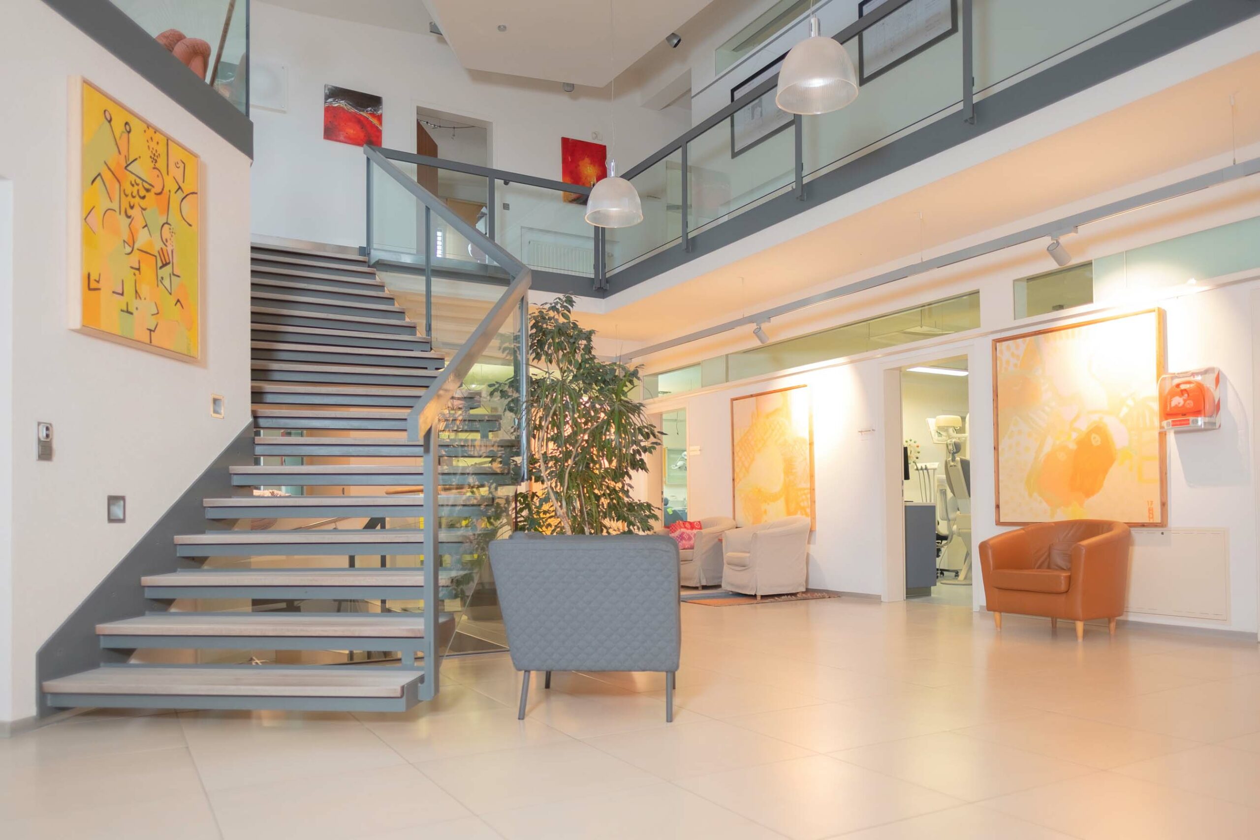 Auf über 1000m2 können wir unseren Patient*innen in angenehmer Atmosphäre das gesamte zahnärztliche Spektrum anbieten.